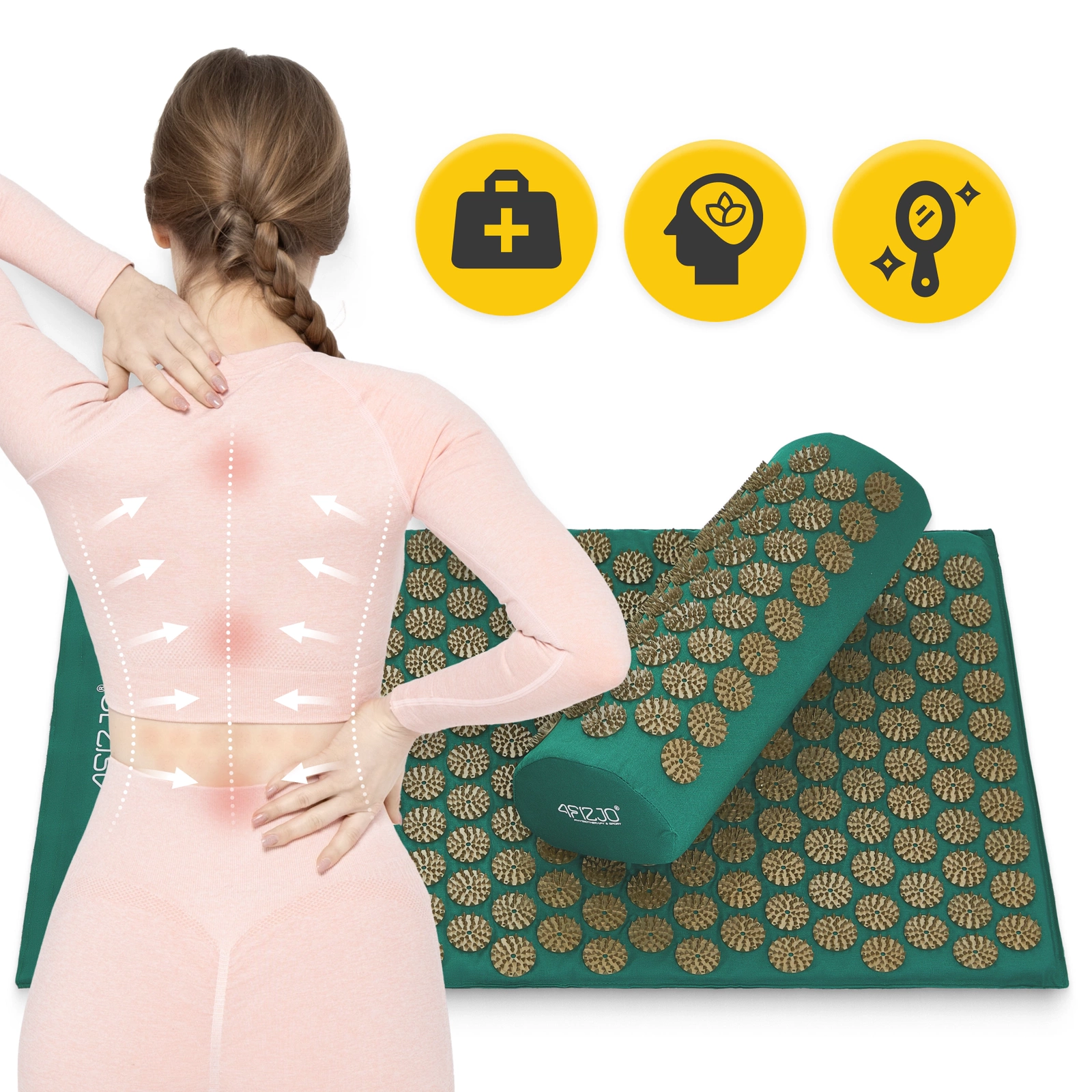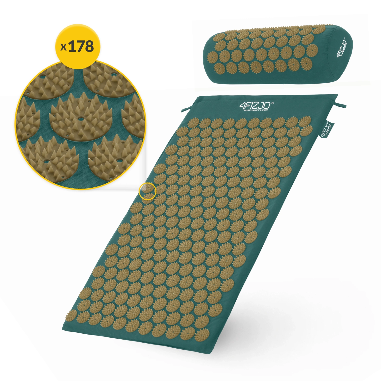 Akupressurmatte Med Pute Klassisk Mørkegrønn