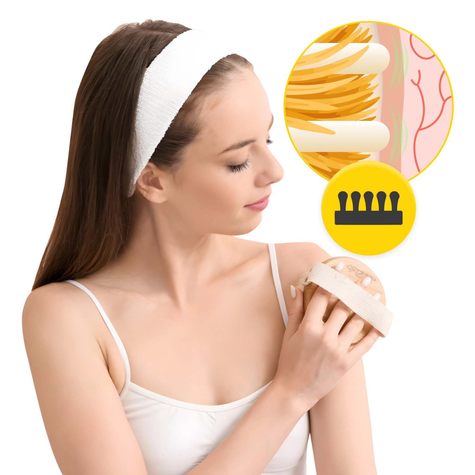 Gir ordene «Bekjempe cellulitter» deg søvnløse netter? Kosmetikk og behandlinger på skjønnhetssalonger hjelper bare med «appelsinskall»-fenomenet og appelsinskallhuden kommer tilbake som en boomerang? Ikke bekymre deg! Cellulitt er en elektrisk slagmark det vet vi men det finnes en løsning. Du kan bekjempe den hjemme uten dyrt tilbehør eller kosmetikk. Prøv 4FIZJO Anti-Cellulitt Tørrmassasjebørste med spesielle børstehår og silikonknotter. Selv om hovedformålet er å fjerne appelsinskallhuden forbedrer denne enheten raskt utstrålingen og beroliger huden. En glattere og fastere kropp er nå bare et trykk unna!