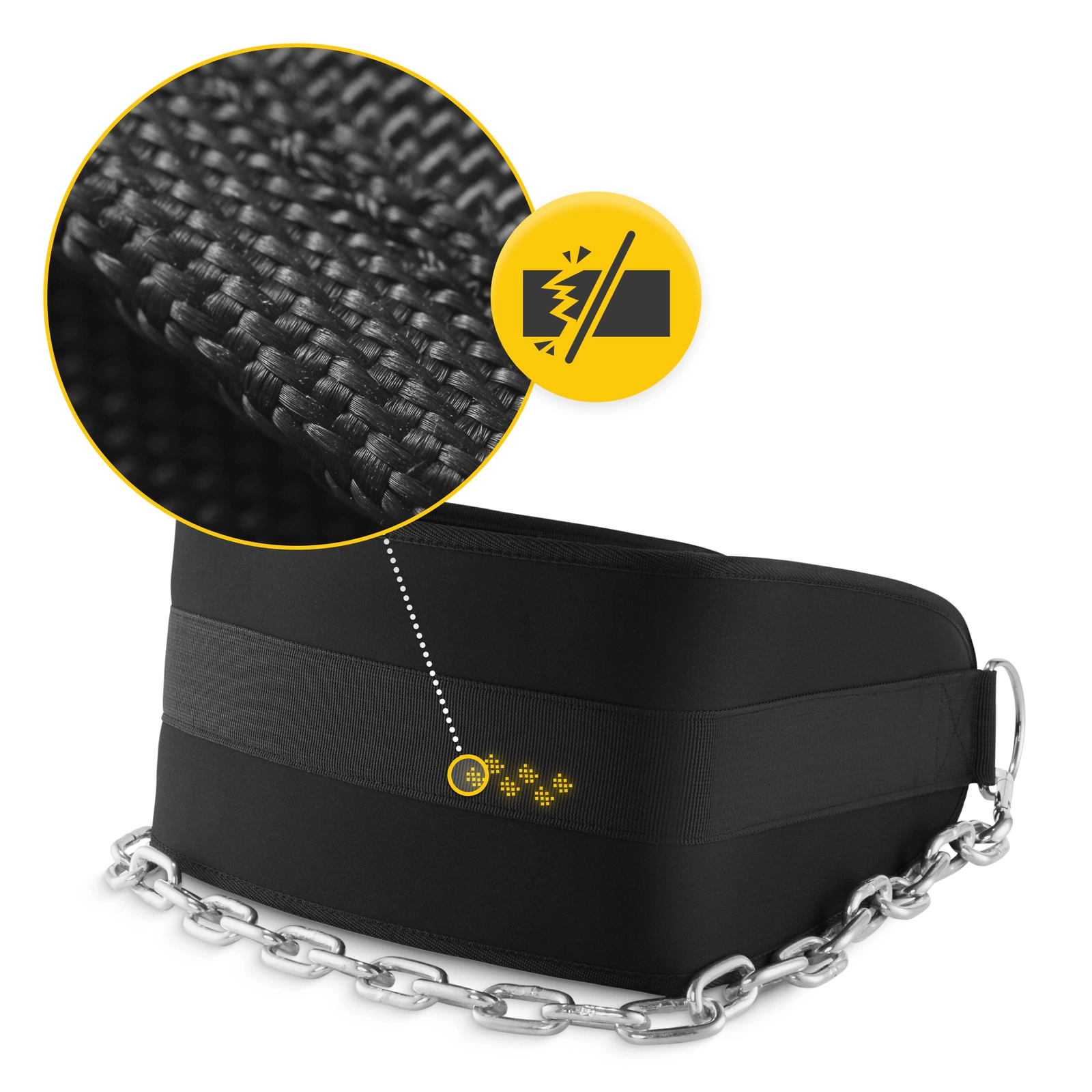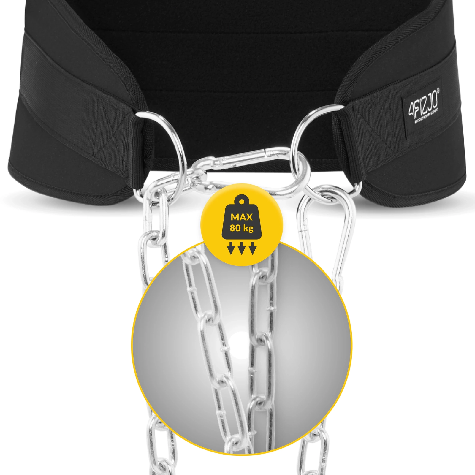 Liker du ikke kjedelig styrketrening og ønsker å diversifisere øvelsene dine? Kanskje du vil trene mer effektivt og intenst? Ta deretter treningen til neste nivå med 4FIZJO Weighted Bodybuilding Dip Belt! Dip-beltet er et flott alternativ for både profesjonelle kroppsbyggere og amatørtrenere. Med den kan du utføre et bredt spekter av øvelser for øvre og nedre muskler uten å belaste ryggraden. Takket være muligheten til å legge ekstra vekt på kjedet kan du systematisk øke belastningen noe som gir enda bedre resultater. Styrketreningsbelte med kjede 4FIZJO styrketreningsbelte er profesjonelt sportsutstyr for kroppsbyggere. Den er perfekt for de som ønsker å bygge muskler eller forbedre sin fysiske form. Vil du ha et belte som oppfyller dine forventninger? Sørg for å sjekke ut funksjonene!