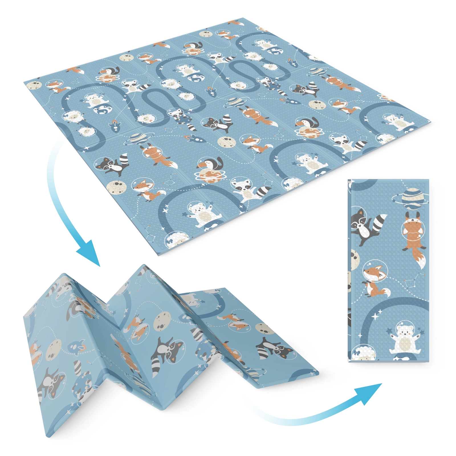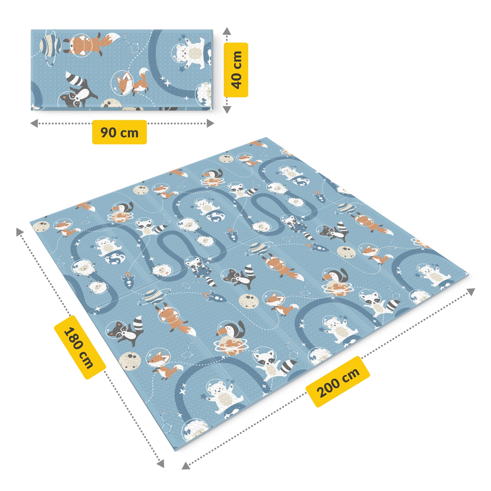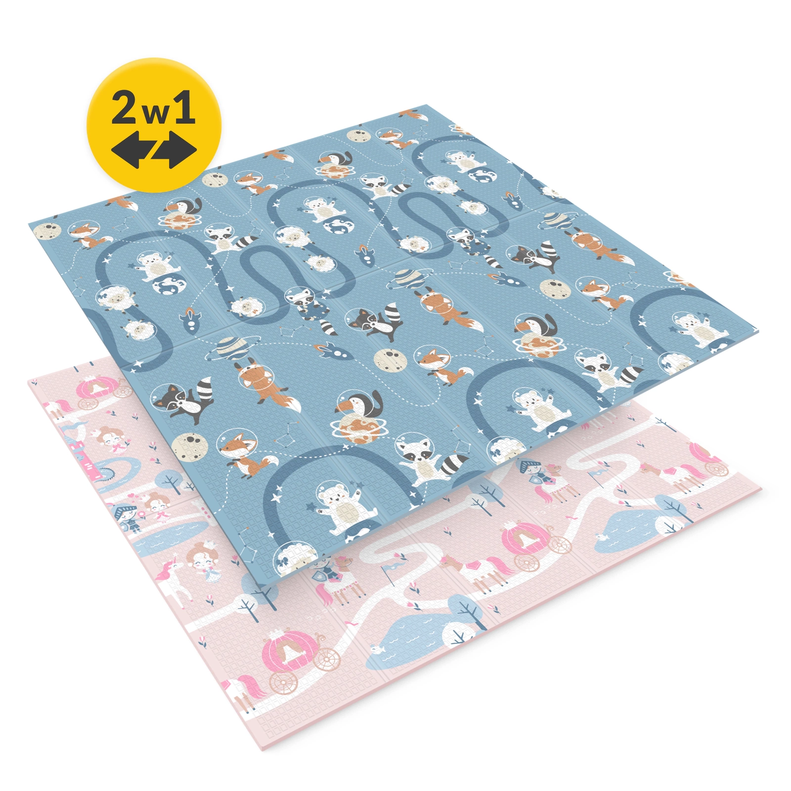 Alle foreldre ønsker at barnet deres skal ha de beste mulige forholdene for trygg utvikling og utforskning. Den sammenleggbare lekematten «Kingdom and Space» er mer enn bare et sted å leke – det er et rom som støtter den lille i alle utviklingsstadier helt fra de første dagene i livet. Den er designet med tanke på de yngstes behov og gir den den perfekte overflaten for å lære å krabbe rulle over eller ta sine første skritt. Takket være kombinasjonen av nøye utvalgte farger og mønstre støtter denne matten barnets sensoriske og motoriske utvikling perfekt samtidig som den sikrer barnets sikkerhet og komfort. 4FIZJO Rullematte for barn og babyer Som fysioterapeuter forstår vi hvor viktig den lilles sikkerhet er. Vil du være sikker på at dette er en av de beste dobbeltsidige lekemattene? Sørg for å sjekke ut funksjonene! ✔️ Sikkerhetssertifikater: CE SGS
