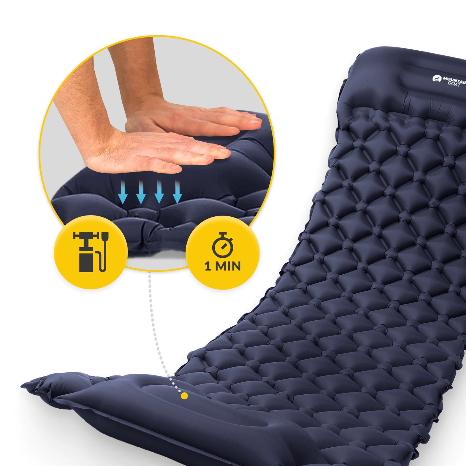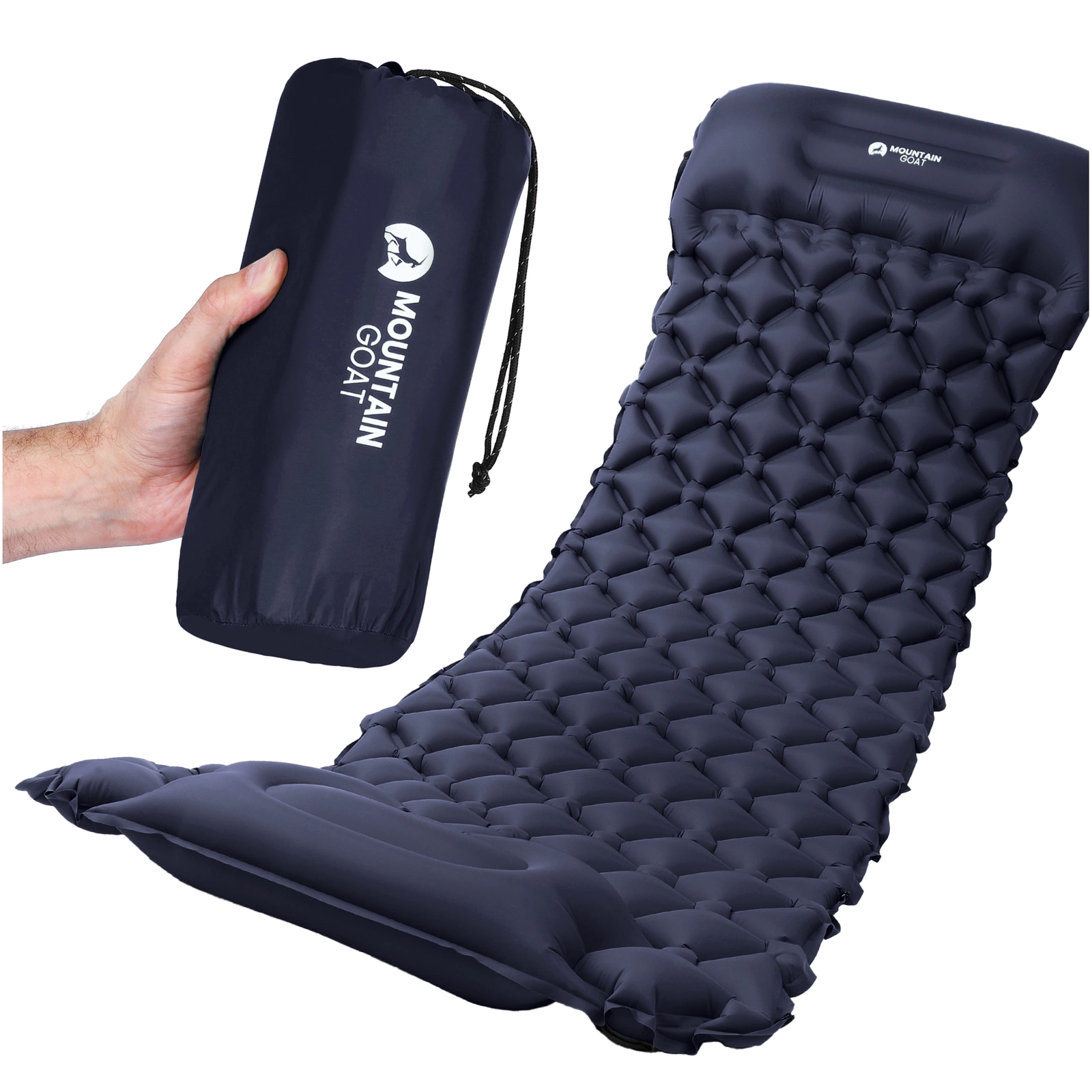 Mountain Goat Selvoppblåsbar Turistmadrass For Én Person Marineblå